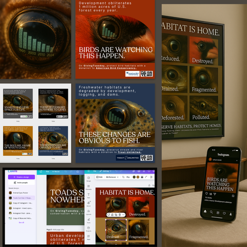 This campaign imagines the experience of habitat loss from the perspective of the wildlife trying to survive the shrinking of their worlds.